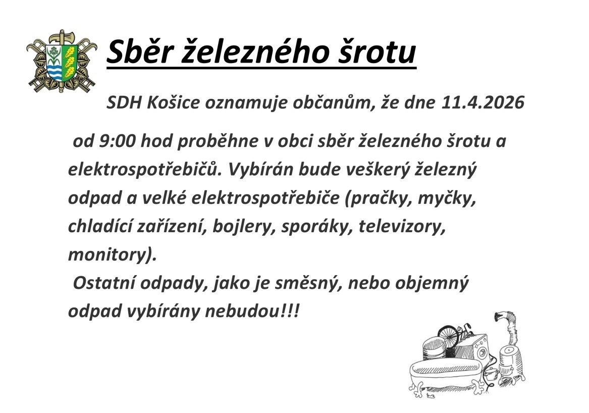 SDH Košice v sobotu 5. dubna 2025 uspořádal každoroční sběr železného šrotu a elektroodpadu a ve spolupráci s obcí Košice i další ročník akce Ukliďme Košice a okolí v rámci celorepublikové akce Ukliďme Česko